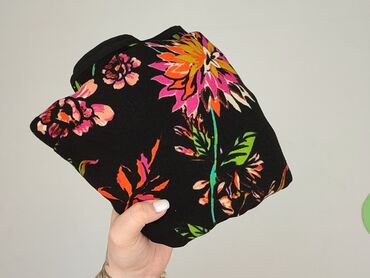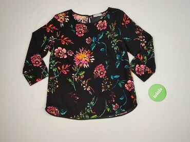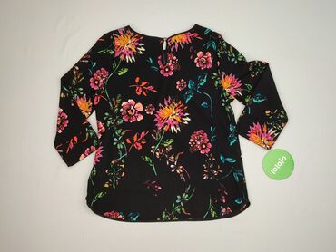 Czarna bluzka damska z dekoltem w kształcie litery V, ozdobiona wzorem w różowe, beżowe i białe kwiaty z zielonymi liśćmi. Długie rękawy zakończone są mankietami. Luźny fason zapewnia wygodę noszen...Stan:
