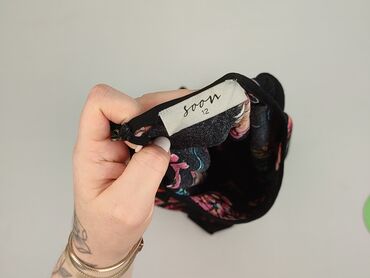 Czarna damska bluzka z krótkim rękawem i nadrukiem kwiatów - Kolor: czarny z dużym nadrukiem czerwonego kwiatu z przodu (na tle biało‑czarnych pasów) - Krój: luźny, zaokrąglony dekolt, tył delikat...