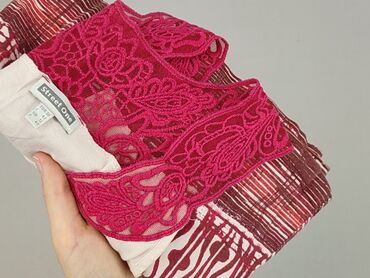 Bez rękawówElegancka bluzka damska marki Street One, w rozmiarze europejskim 38, idealna na różne okazje. Bluzka charakteryzuje się połączeniem bieli i odcieni różu, z przyciągającym wzrok wzorem w serca i faliste linie na dole. Górna część bluzki oraz ramiona ozdobione są ażurową koronką w intensywnym odcieniu fuksji, dodającą lekkości i kobiecości. Okrągły dekolt zapewnia komfort noszenia. Idealna do stylizacji dziennych, a także na wieczorne wyjścia.