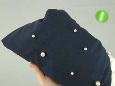 Bluzka damska z krótkim rękawem - Kolor: granatowy z białym, abstrakcyjnym wzorem - Fason: lekko taliowana, okrągły dekolt - Ozdoby: aplikacje przy dekolcie – duże srebrne „perły” oraz granatowe, ...