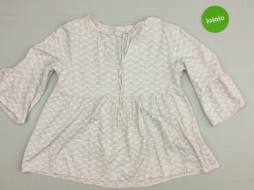 Bluzka damska NKD - Fason: luźna bluzka z dekoltem w serek - Zapięcie: krótka listwa z trzema guziczkami z przodu - Rękawy: długie, zakończone mankietem na guzik - Wzór: kwiatowy, na różowym tle (...Stan: