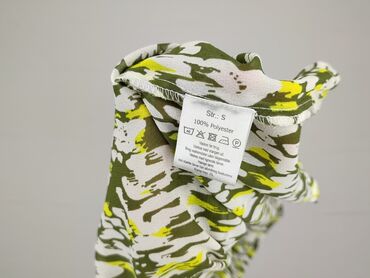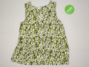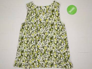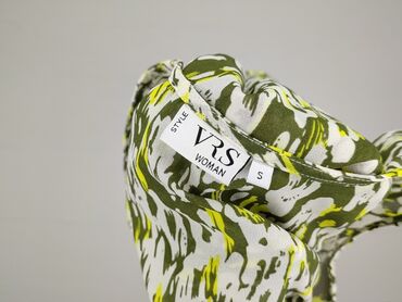 Bez rękawówPrzewiewna bluzka damska VRS Woman w rozmiarze S, wykonana w 100% z poliestru. Charakteryzuje się wzorzystym nadrukiem w odcieniach zieleni, żółci i bieli, przypominającym abstrakcyjny kamuflaż lub zwierzęcy print. Bluzka ma okrągły dekolt i jest bez rękawów, co sprawia, że idealnie nadaje się na ciepłe dni. Fason zapewnia swobodę ruchów i komfort noszenia, zarówno na co dzień, jak i na specjalne okazje.