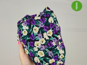 Przewiewna koszula damska z krótkim rękawem, idealna na ciepłe dni. Charakteryzuje się czarnym tłem z wyrazistym, kwiatowym wzorem w odcieniach niebieskiego i żółtego. Kołnierzyk i wykończenia ręka...
