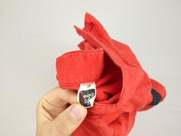 Czerwona bluzka damska w białe paski, zapinana na guziki. Posiada długie rękawy zakończone mankietami oraz kołnierzyk. Wykonana z mieszanki bawełny i elastanu, co zapewnia komfort noszenia i dopaso...Stan: