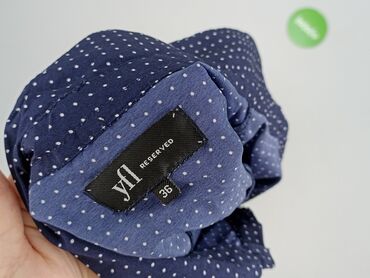 Bluzka damska Reserved, rozmiar 36 - Krój: luźny, zapinana na guziki z przodu - Kołnierzyk: klasyczny stójkowy - Rękawy: krótkie, szerokie, lekko falbaniaste - Wzór: białe tło w granatowe kropki (...