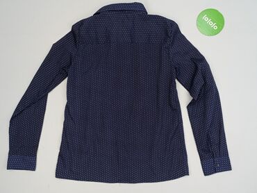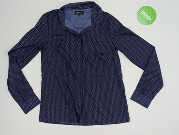 Długi rękawGranatowa bluzka damska w białe kropki, idealna do różnych stylizacji. Posiada klasyczny kołnierzyk i długie rękawy zakończone mankietami. Bluzka jest zapinana na guziki na całej długości, co umożliwia noszenie jej zarówno jako elementu formalnego, jak i casualowego stroju. Wewnątrz kołnierzyka i mankietów znajduje się jaśniejsza, wzorzysta podszewka, dodająca bluzce subtelnego akcentu. Rozmiar 36. Stan idealny.