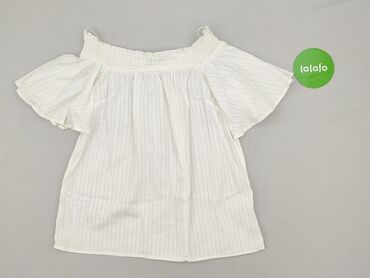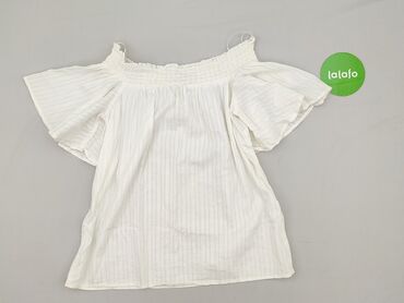 Biała bluzka hiszpanka z krótkim rękawem - Krój: odkryte ramiona (hiszpanka) z krótkimi, lekko rozszerzanymi rękawkami - Materiał: lekka tkanina o fakturze krepy z delikatnymi pionowymi paseczkami...