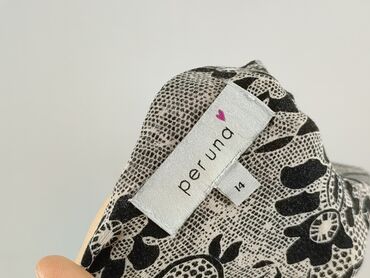 Biała bluzka damska marki Per Una, wykonana z delikatnej koronki z motywem kwiatowym w odcieniach bieli i czerni. Bluzka posiada dekolt w kształcie litery V oraz krótkie rękawy, obszyte falbanką, c...