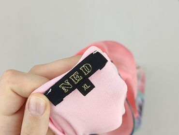 Bluzka damska w kolorze pudrowego różu z luźnym, poncho‑podobnym krojem i ściągaczem na dole. Dekolt okrągły, zdobiony drobnymi koralikami/dżetami. Na przodzie duży, kolorowy nadruk kwiatowo‑motylk...