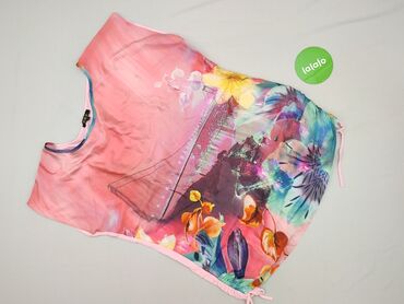 Krótki rękawLekka bluzka damska w odcieniach różu, z szerokim dekoltem i krótkimi rękawami, ozdobiona wielobarwnym, abstrakcyjnym wzorem przypominającym krajobraz lub architekturę w połączeniu z kwiatowymi motywami. Sprawdzi się idealnie jako element letnich stylizacji, zapewniając swobodę ruchów i przewiewność. Delikatny materiał, z którego została wykonana, jest przyjemny w dotyku i zapewnia komfort noszenia w cieplejsze dni.
