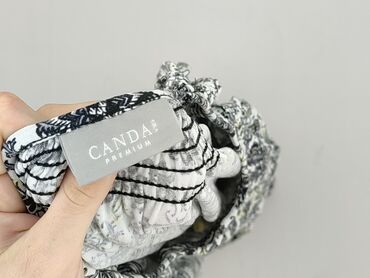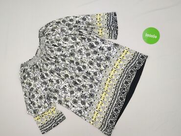 Bluzka damska C&A – CANDA - Model: koszulowa bluzka z kołnierzykiem - Wzór: czarno‑białe kwiaty z delikatnym, połyskującym akcentem - Krój: lekko taliowany, krótkie bufiaste rękawy, falowana faktu...