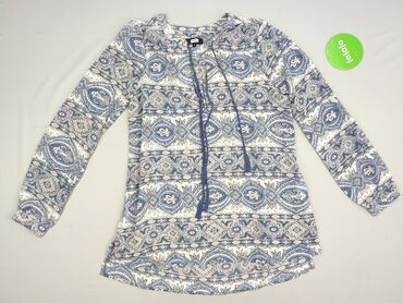Bluzka BIKBOK – rozmiar S - Fason: lekka, zwiewna bluzka z długim rękawem, dekolt w serek - Wzór: liście w odcieniach beżu, szarości i fioletu - Tkanina: 65% poliester, 35% wiskoza – miękka, przew...