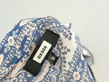 Bluzka damska Bik Bok - Rozmiar: S - Krój: krótka bluzka z głębokim dekoltem V - Rękawy: krótkie, bufiaste - Talia: mocno marszczona/szmizjerka (gumkowane panele), falbanka u dołu - Wzór: drobna k...