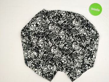 Bluzka Sinsay damska - Rozmiar: L (z metki) - Skład: 100% wiskoza – lekka, przewiewna tkanina - Kolor/wzór: czarne tło w drobny, nieregularny, kwiatowo-abstrakcyjny nadruk w odcieniach bieli, czer...