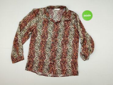 Długi rękawBluzka damska z długimi rękawami, ozdobiona wzorem w panterkę w odcieniach czerwieni, pomarańczu i czerni. Bluzka posiada kołnierzyk i dekolt w kształcie litery V, co nadaje jej elegancki wygląd. Wykonana jest z poliestru, co zapewnia lekkość i komfort noszenia. Idealna do stylizacji codziennych, jak i na bardziej formalne wyjścia.
