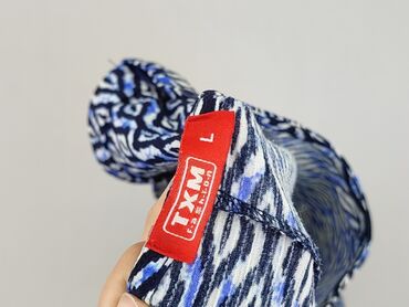 Bez rękawówPrzedmiotem ogłoszenia jest bluzka damska TXM F-A-SH-I-O-N w rozmiarze L, charakteryzująca się unikatowym wzorem w odcieniach bieli, granatu i błękitu. Bluzka posiada klasyczny dekolt w kształcie litery V, co dodaje jej elegancji. Krótki rękaw sprawia, że jest idealna na cieplejsze dni. Dół bluzki jest zaokrąglony, co zapewnia swobodny i wygodny krój. Materiał bluzki jest przyjemny w dotyku i zapewnia komfort noszenia. Jest to wszechstronny element garderoby, który sprawdzi się w wielu stylizacjach, zarówno codziennych, jak i bardziej formalnych.