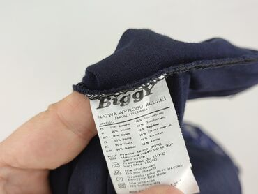 Granatowa bluzka z lekkiego, półtransparentnego szyfonu. - Krój: swobodny, z delikatnymi zakładkami na przodzie, okrągły dekolt. - Rękawy: długie, zakończone gumką przy mankiecie. - Dół: lekko ści...