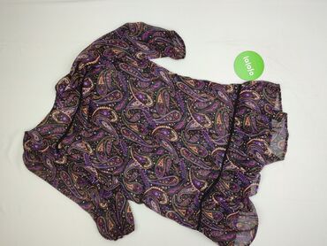 Bluzka damska Signature Experience z krótkim rękawem, w fioletowo-czarnym kolorze. Charakteryzuje się wzorem z liści, który pokrywa całą powierzchnię materiału. Bluzka posiada okrągły dekolt i stan...