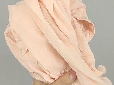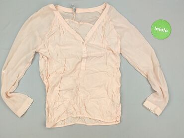 Bladoróżowa, lekka bluzka damska z długim rękawem. - Materiał: cienka, półprzezroczysta tkanina o marszczonej fakturze. - Krój: swobodny, z zaokrąglonym dekoltem; tył wydłużony (asymetryczny dół). ...