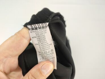 Czarna bluzka damska z ozdobnym panelem z przodu - Rozmiar: M (EUR/US/CA/MX – M) - Fason: luźniejszy, lekko wydłużony tył, rękaw 3/4 - Dekolt: łódka z subtelną lamówką; z tyłu łezka zapinana na gu...