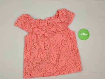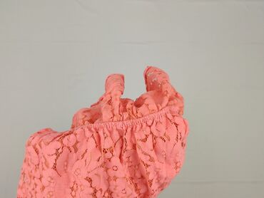 Koronkowa bluzka damska w kolorze koralowym - Model: luźna, przewiewna bluzka z krótkim rękawem - Dekolt: półokrągły z dekoracyjną, ażurową koronką wokół kołnierza - Tkanina: ażurowa koronka na ca...