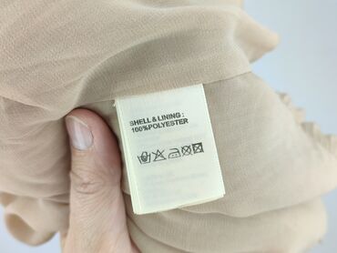 Bluzka damska z krótkim rękawem, beżowa/nude. - Przód z gładkiej, elastycznej tkaniny, tył i rękawki z drobnej siateczki. - Okrągły dekolt z wstawką w kolorze złota przy krawędzi. - Na froncie duży...