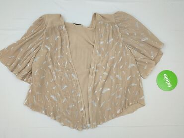 Bluzka damska w kwiaty - Krój kopertowy z zakładką z przodu, delikatnie podkreślający talię - Rozkloszowane, krótkie rękawy typu kimono - Długość do bioder - Beżowa baza z nadrukiem niebieskich ró...