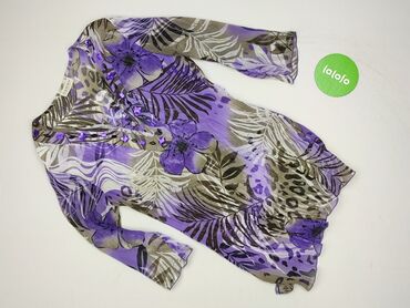 Długi rękawPrzewiewna bluzka damska marki Canda, z długimi rękawami i dekoltem w kształcie litery V, ozdobiona fioletowymi kryształkami. Materiał charakteryzuje się wzorem w liście paproci i zwierzęce motywy w odcieniach fioletu, szarości, czerni i bieli. Idealna na cieplejsze dni, zapewnia komfort i styl. Pasuje do wielu stylizacji, od casualowych po bardziej eleganckie.