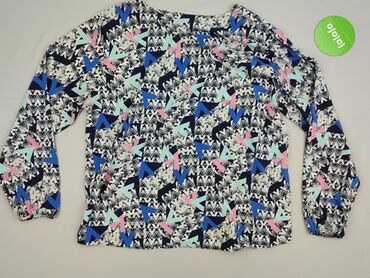 Bluzka damska z długim rękawem, wzór geometryczny w granatowo-czerwono-białej kolorystyce. - Fason: lekko rozkloszowany dół z delikatnym marszczeniem w talii, podkreśla sylwetkę i dodaje lekkości....