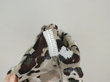 Bluzka damska SHEIN, rozmiar L (EU 40/42, US 8/10). - Wzór: drobny, abstrakcyjny print w odcieniach beżu, bieli i czerni - Krój: luźniejszy, z delikatnym marszczeniem w talii podkreślającym sylwet...