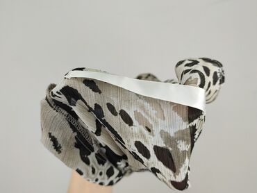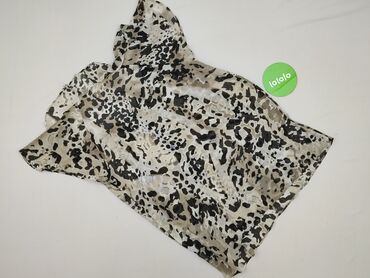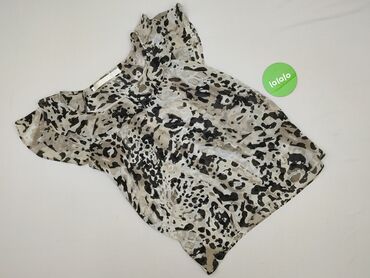 Bluzka damska z cienkiej, półtransparentnej tkaniny w panterkę (beże, brązy, czerń). Luźny, swobodny krój z dekoltem w łódkę/okrągłym, lekko marszczonym przodem. Rękawy 3/4 zakończone delikatną gum...Stan: