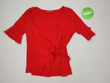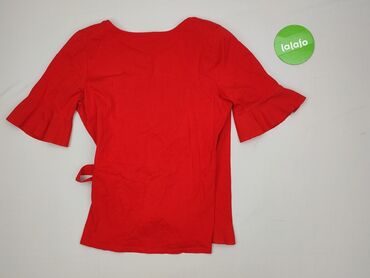 Czerwona bluzka Orsay – rozmiar XS - Fason: luźniejszy, z marszczeniem na przodzie pod dekoltem - Rękaw: długi - Dekolt: okrągły, ozdobiony czarnymi koralikami/cekinami tworzącymi efektowną lamówk...