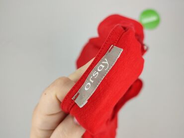 Rękaw 3/4Czerwona bluzka marki Orsay z dekoltem w łódkę i rękawami 3/4 zakończonymi falbankami. Bluzka jest wiązana w talii, co pozwala na dopasowanie do sylwetki. Wykonana z materiału, który w 100% składa się z bawełny w korpusie i 100% poliestru w rękawach. Idealna do casualowych stylizacji.