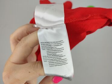 Czerwona bluzka hiszpanka w białe grochy – Orsay - Fason: hiszpanka z odkrytymi ramionami - Dekolt i górna krawędź na szerokiej, elastycznej gumce (marszczenie) - Rękawy długie, marszczone, z wiąz...Stan: