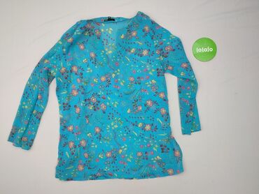 Bluzka H&M, rozmiar M - Fason: luźny top z długim rękawem - Dekolt: w kształcie V z krótką listwą - Długość: lekko wydłużony tył, zaokrąglone brzegi - Wzór: drobne kwiaty w odcieniach niebieskiego...