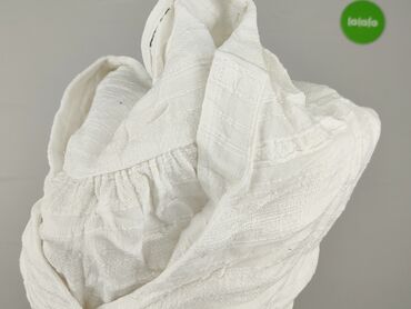 Bluzka damska z długim rękawem, biała. - Krój prosty, luźniejszy, z okrągłym dekoltem. - Materiał lekki, półprzezroczysty, z delikatną fakturą w poziome, nieregularne prążki/drapowania. - Rękawy...