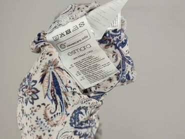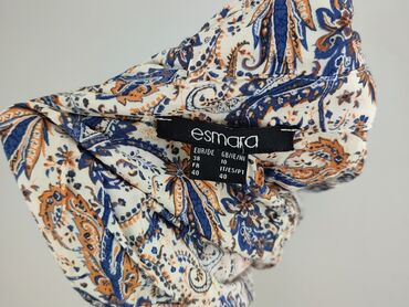 Bez rękawówBluzka damska marki Esmara z długim rękawem, ozdobiona wzorem paisley w odcieniach beżu, brązu i granatu. Luźny krój zapewnia komfort noszenia, a wzorzysta tkanina nadaje jej unikalny charakter. Bluzka posiada klasyczny kołnierzyk i zapięcie na guziki, idealna do noszenia na co dzień lub na specjalne okazje. Materiał jest przyjemny w dotyku i łatwy w pielęgnacji. Bluzka to wszechstronny element garderoby, który sprawdzi się w wielu stylizacjach.