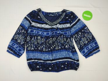 Bluzka damska F&F - Kolor: granatowy - Materiał: 100% wiskoza (etikieta na zdjęciu) - Krój: luźny, tunikowy - Rękaw: 3/4 - Dekolt: okrągły z niewielkim rozcięciem i troczkami do wiązania - Ozdoby:...