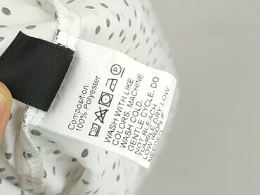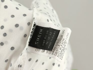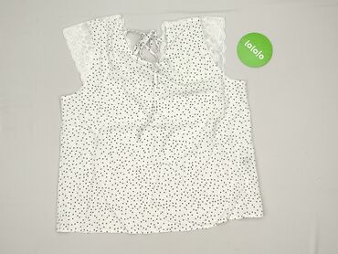 Bez rękawówBiała bluzka damska marki Shein w rozmiarze EU XL, ozdobiona czarnymi kropkami. Bluzka charakteryzuje się koronkowymi detalami na ramionach i wiązaniem na plecach. Wykonana w 100% z poliestru, jest idealna na wiele okazji. Bluzka jest używana.