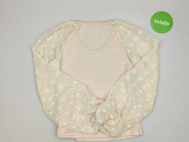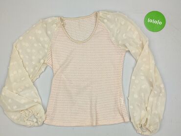 Bluzka damska SHEIN, rozmiar S (EU 36 / US 4). - Kolor: jasny beż/ecru, delikatnie prążkowana dzianina. - Fason: dopasowany korpus z półgolfem; długie, bufiaste rękawy z przezroczystego tiulu/chif...