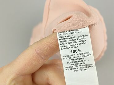 Bluzka damska Reserved w kolorze pudrowego różu, wykonana w 100% z poliestru. Krótki rękaw i okrągły dekolt. Charakterystycznym elementem jest czarny kołnierzyk z drobnymi, białymi zdobieniami, nadający bluzce eleganckiego wyglądu. Rozmiar 44.