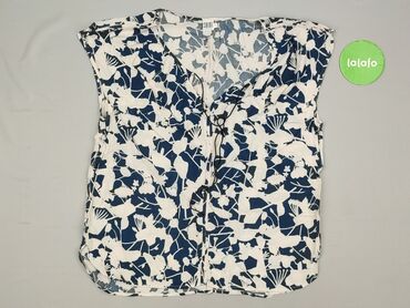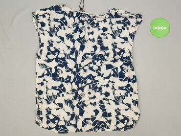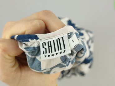 Krótki rękawBluzka damska marki Saint Tropez w rozmiarze L. Charakteryzuje się wzorem w odcieniach bieli i granatu. Bluzka posiada krótkie rękawy oraz dekolt w kształcie litery V, wiązany na sznurki. Luźny krój zapewnia komfort noszenia i swobodę ruchów. Idealna do codziennych stylizacji.