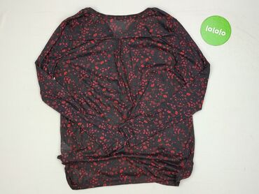 Bluzka damska z długim rękawem, czarna, z efektem „2 w 1”. - Góra i rękawy z półprzezroczystej siateczki w geometryczny, flockowany wzór (miękki aksamitny nadruk). - Przód z kryjącym panelem w kszt...