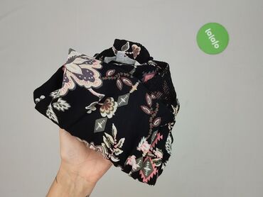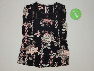 Bluzka damska EXHIBIT S/M – czarna w stokrotki z białym kołnierzykiem - Marka: EXHIBIT - Rozmiar z metki: S/M - Fason: prosta, lekko dopasowana - Rękaw: krótki - Wzór: gęsty print w białe stokrotk...