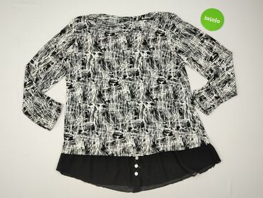 Bluzka damska z długim rękawem, 100% wiskoza - Wzór: czarno‑biały, geometryczne kropki/rombiki tworzące „pikselową” kratkę - Krój: lekko luźny, taliowany marszczeniem w pasie - Dekolt: w serek (V-...