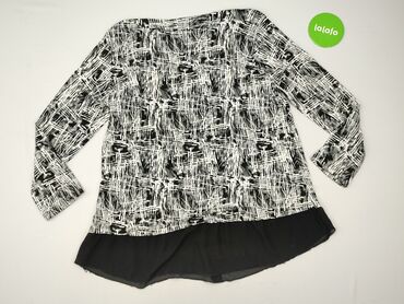 Bluzka damska Blue, rozmiar 38. - Fason: luźny, z delikatnym marszczeniem/przeszyciem przy dolnym brzegu tworzącym lekko „bombkowy” dół. - Rękaw: długi. - Dekolt: łódka. - Wzór: geometryczno-kwiat...