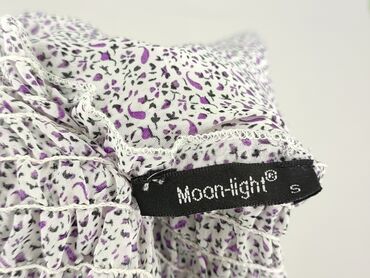 Krótki rękawBluzka damska Moon-light w rozmiarze S, o luźnym kroju, z nadrukiem w drobne wzory. Posiada kwadratowy dekolt i marszczenia w okolicach talii, co nadaje jej lekkości. Rękawy są luźne, rozkloszowane. Fason idealny na co dzień, zapewniający swobodę ruchów. Stan bardzo dobry.