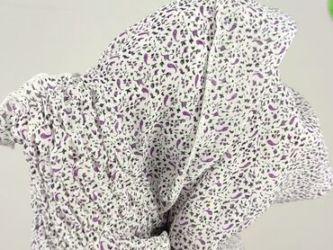 Bluzka damska z lekkiej tkaniny, wzór w drobne kwiaty ułożone w romby. Kolor bazowy: biały; motyw w odcieniach czerwieni, granatu, żółtego i jasnego błękitu. - Krój prosty, swobodny - Dekolt okrąg...