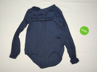 Granatowa bluzka damska z długim rękawem, marki Promod, w rozmiarze L. Wykonana z materiału o drobnym, wytłaczanym wzorze na korpusie, co dodaje jej unikalnego charakteru. Okrągły dekolt i gładkie ...