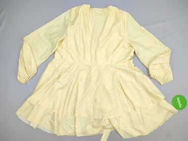 Żółta koszula/bluza damska z krótkim rękawem - Krój: luźny, pudełkowy, z lekko zaokrąglonym dołem (tył nieco dłuższy) - Dekolt: głęboki V - Zapięcie: pojedynczy guzik z przodu - Rękawy: do łokcia ...